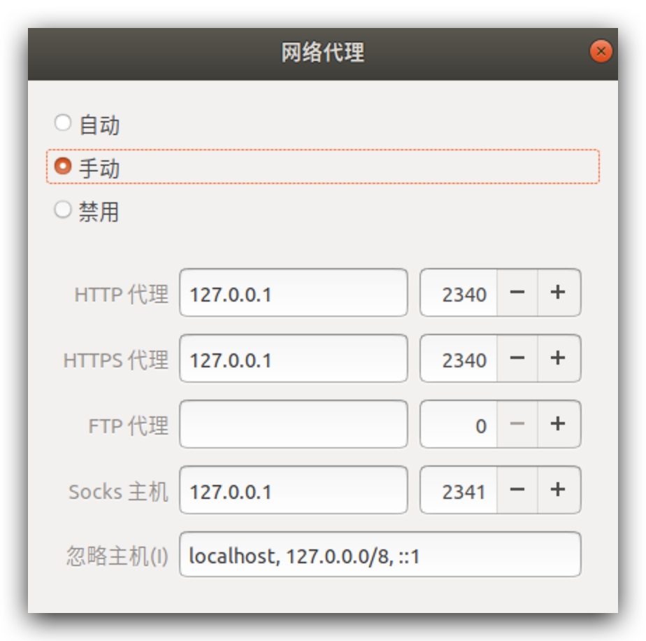 由于 Clashy Settings 中的 Set as system proxy 功能 (Windows & macOS only). 所以我们需要手动设置 Linux 代理 打开网络代理设置