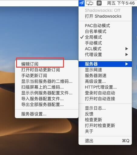 选择服务器,再选编辑订阅