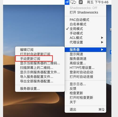 点击服务器,点击手动更新订阅