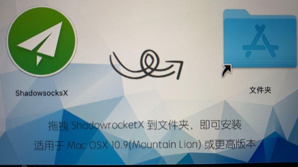 下载ShadowsocksX-NG-R8并安装 打开 ShadowsocksX-NG,拖到 Applications(应用程序)里即可安装